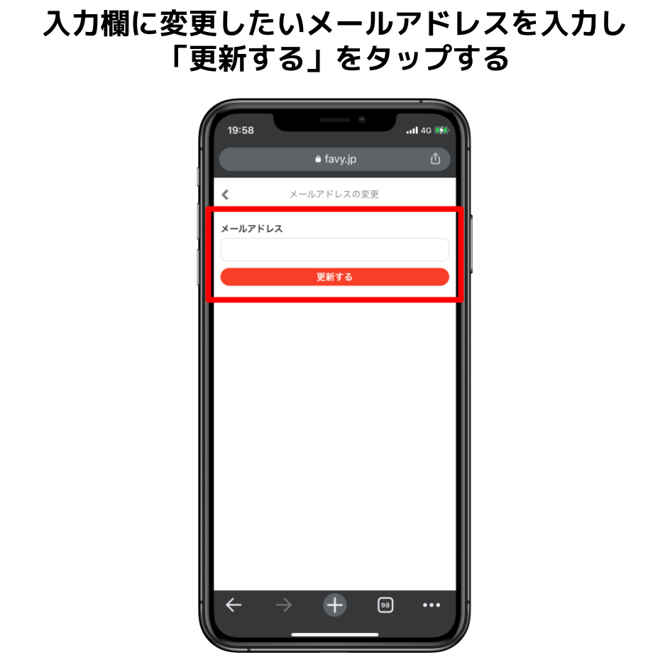 入力欄に変更したいメールアドレスを入力し、「更新する」をタップする。