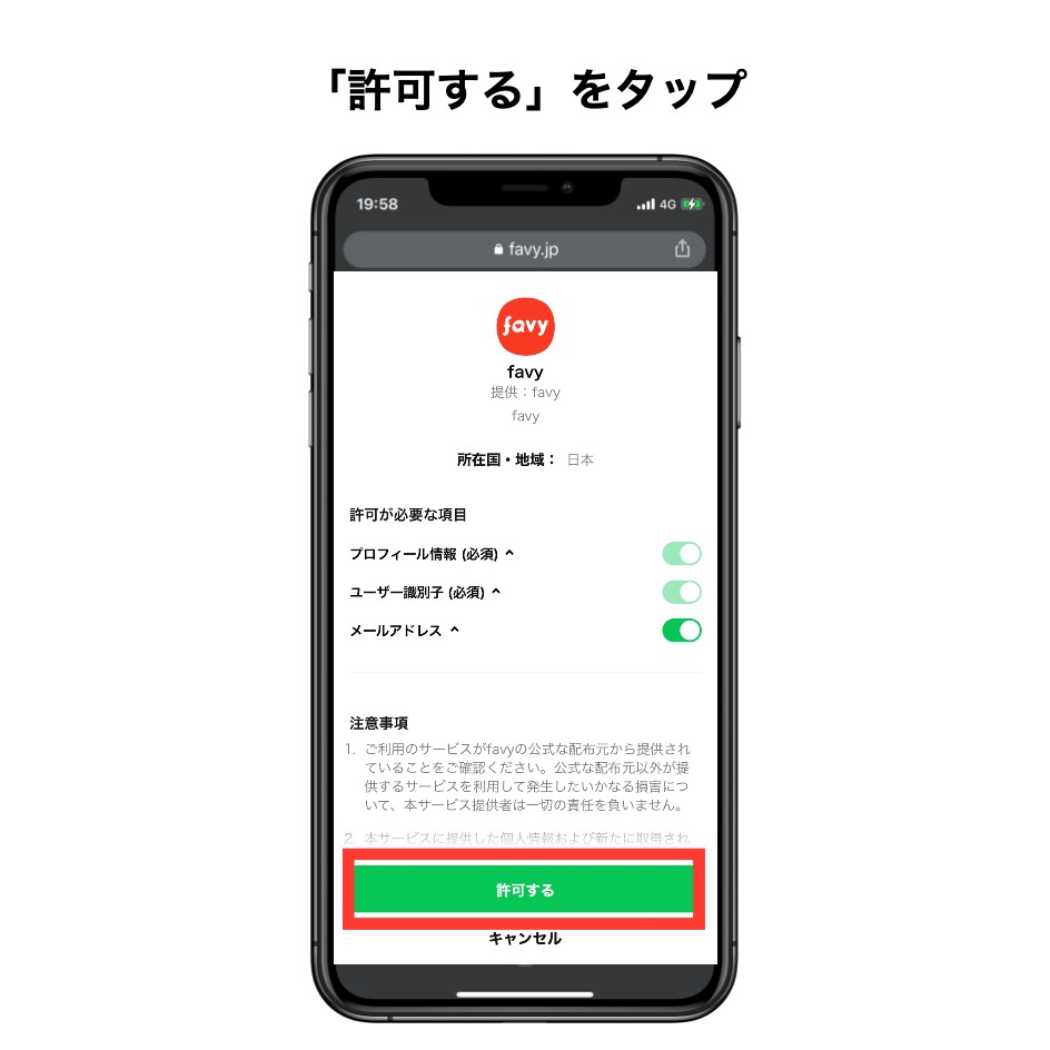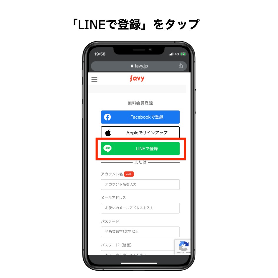 favy個人会員専用の新規登録ぺージにアクセスする。