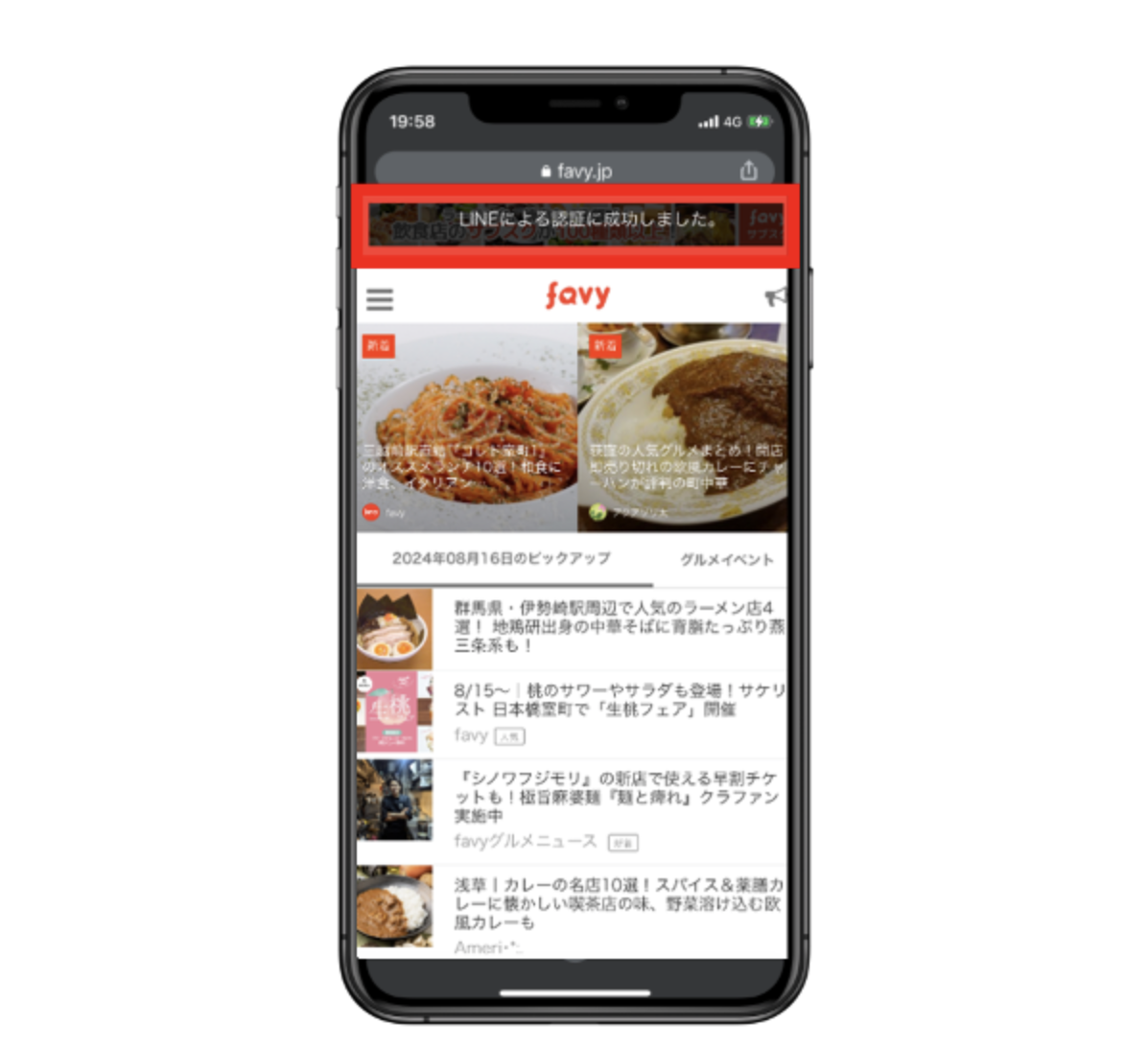 「LINEによる認証に成功しました」の表示で会員登録が完了です。