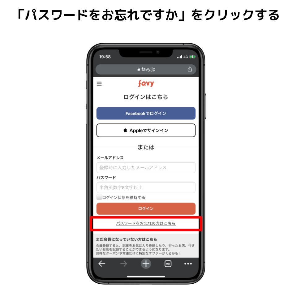 favy個人会員のログインぺージにアクセスする。
