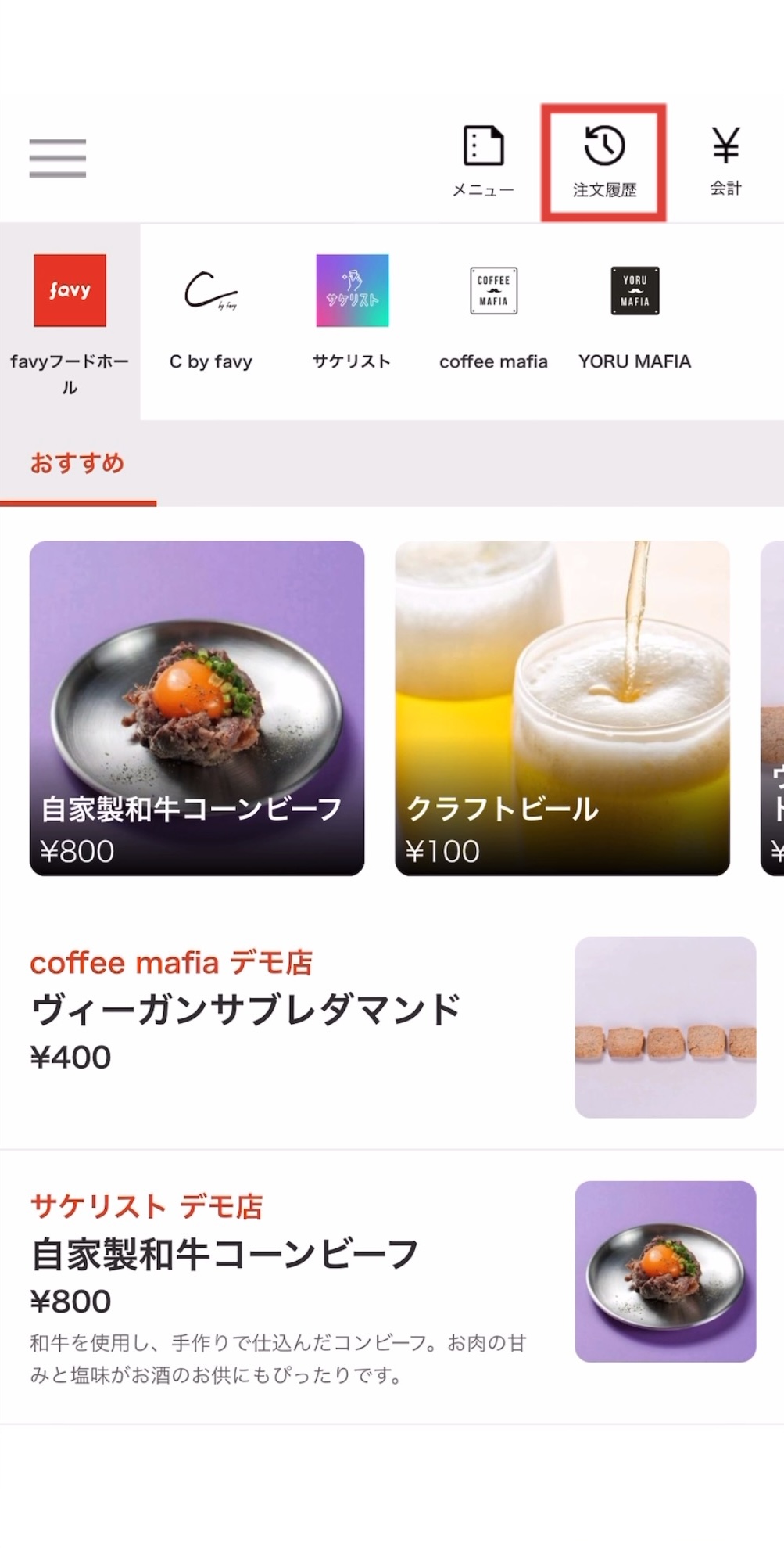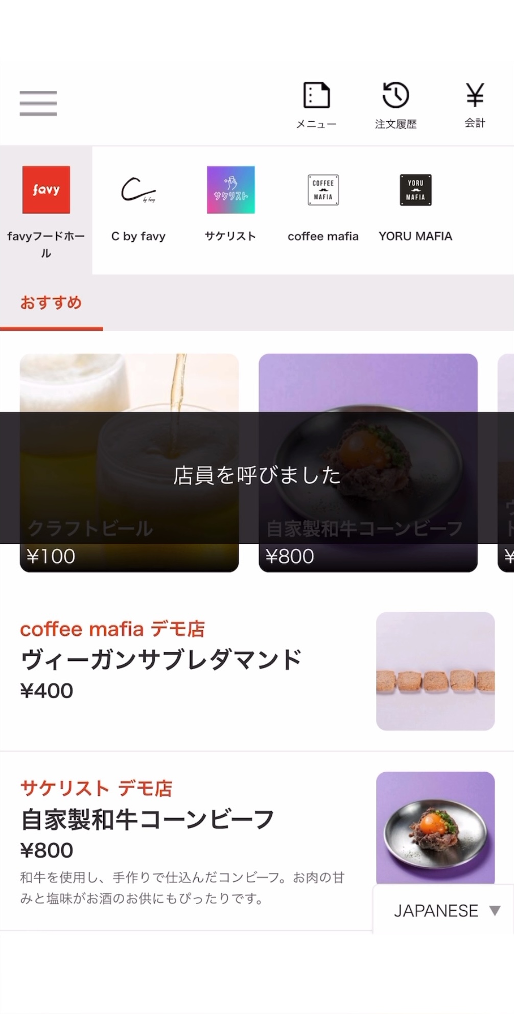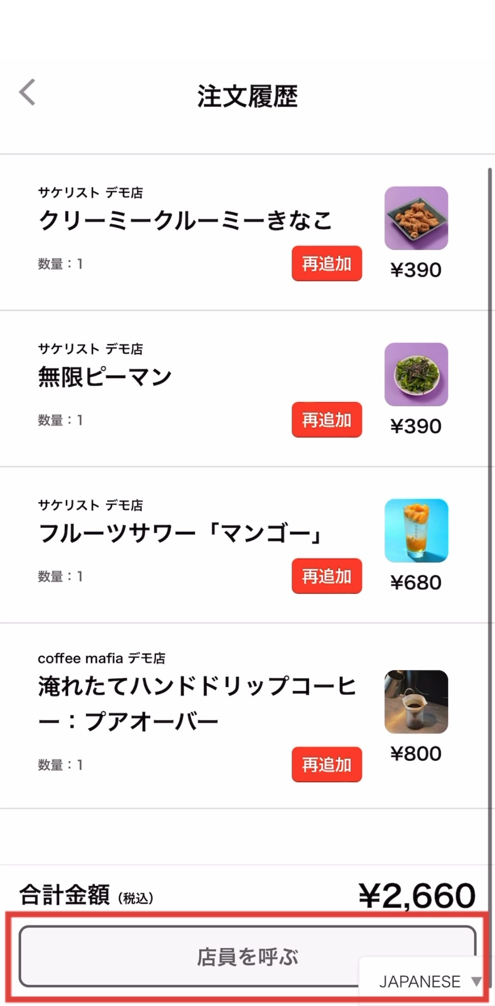 ※注文を取り消したい場合、画面上での取り消しができないため店員を呼び出してお伝えください。
