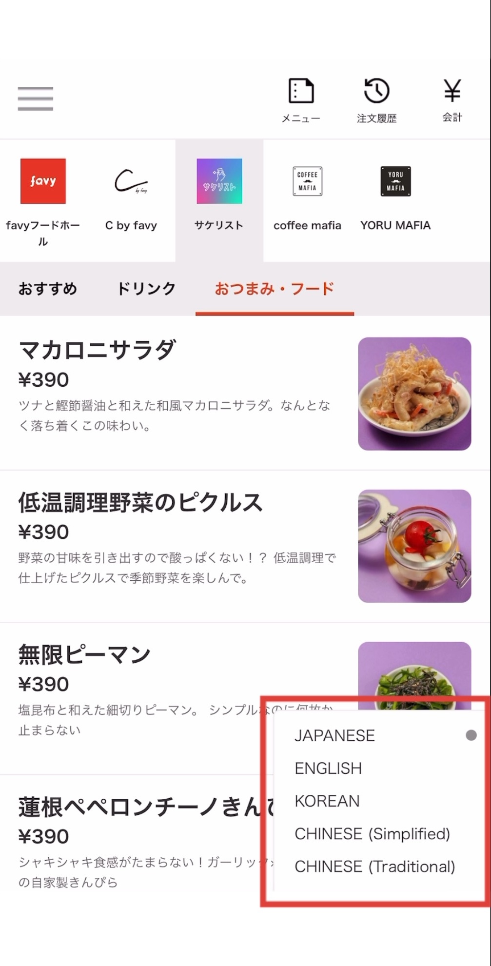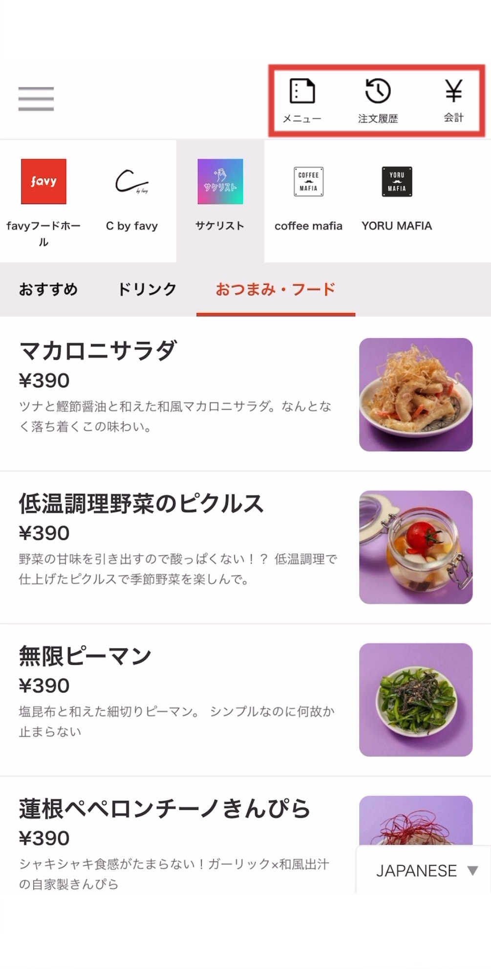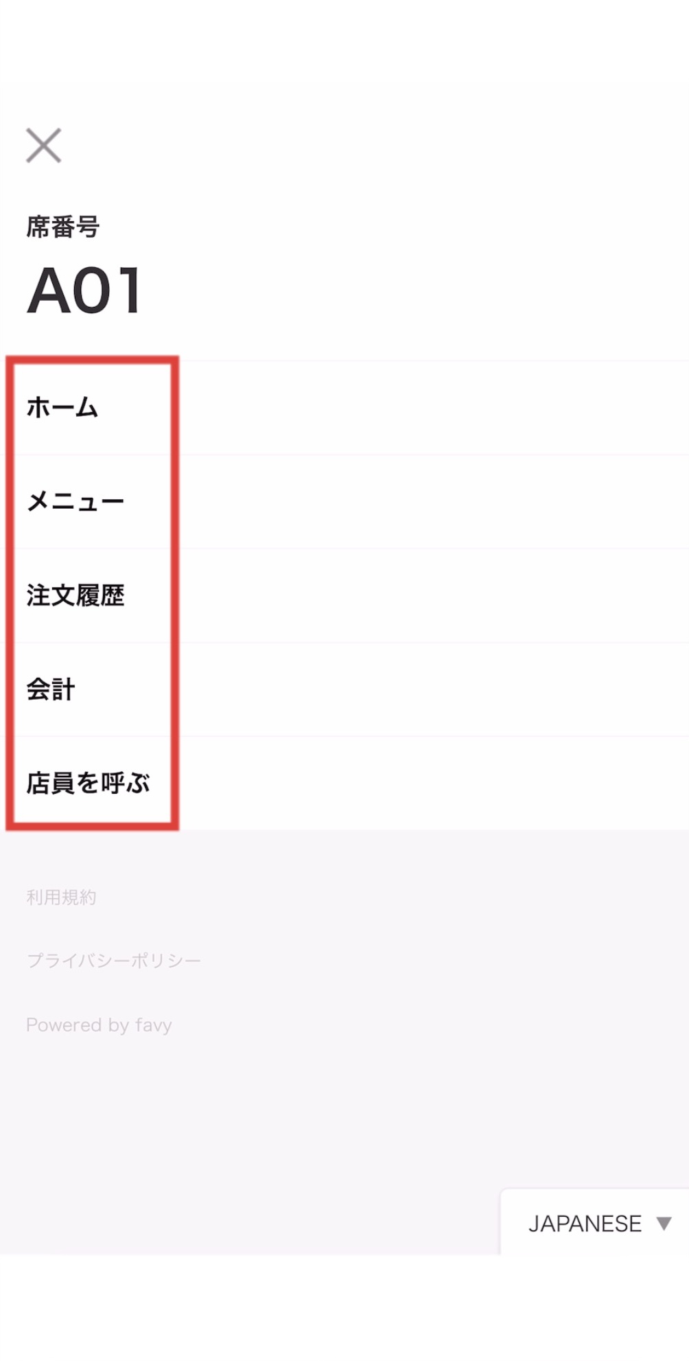 ・注文履歴:あなたのテーブルで注文された商品の一覧が確認できます。