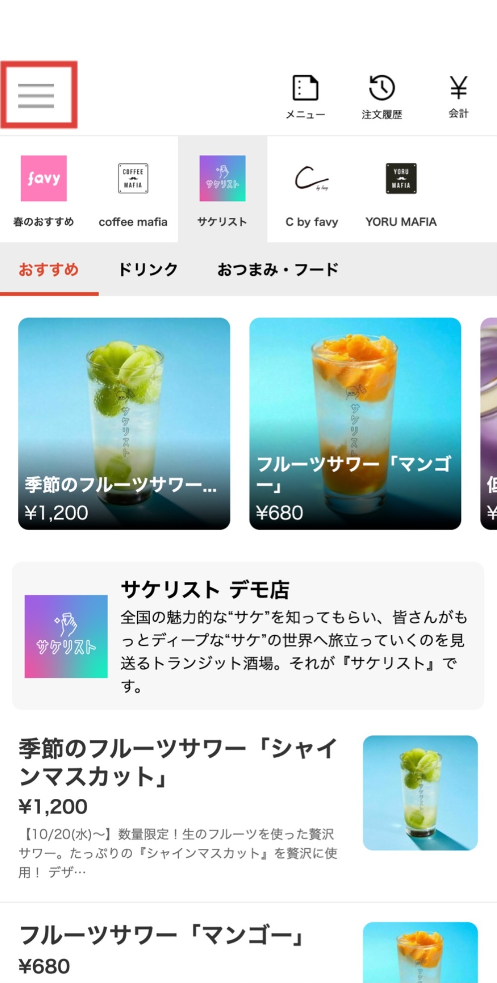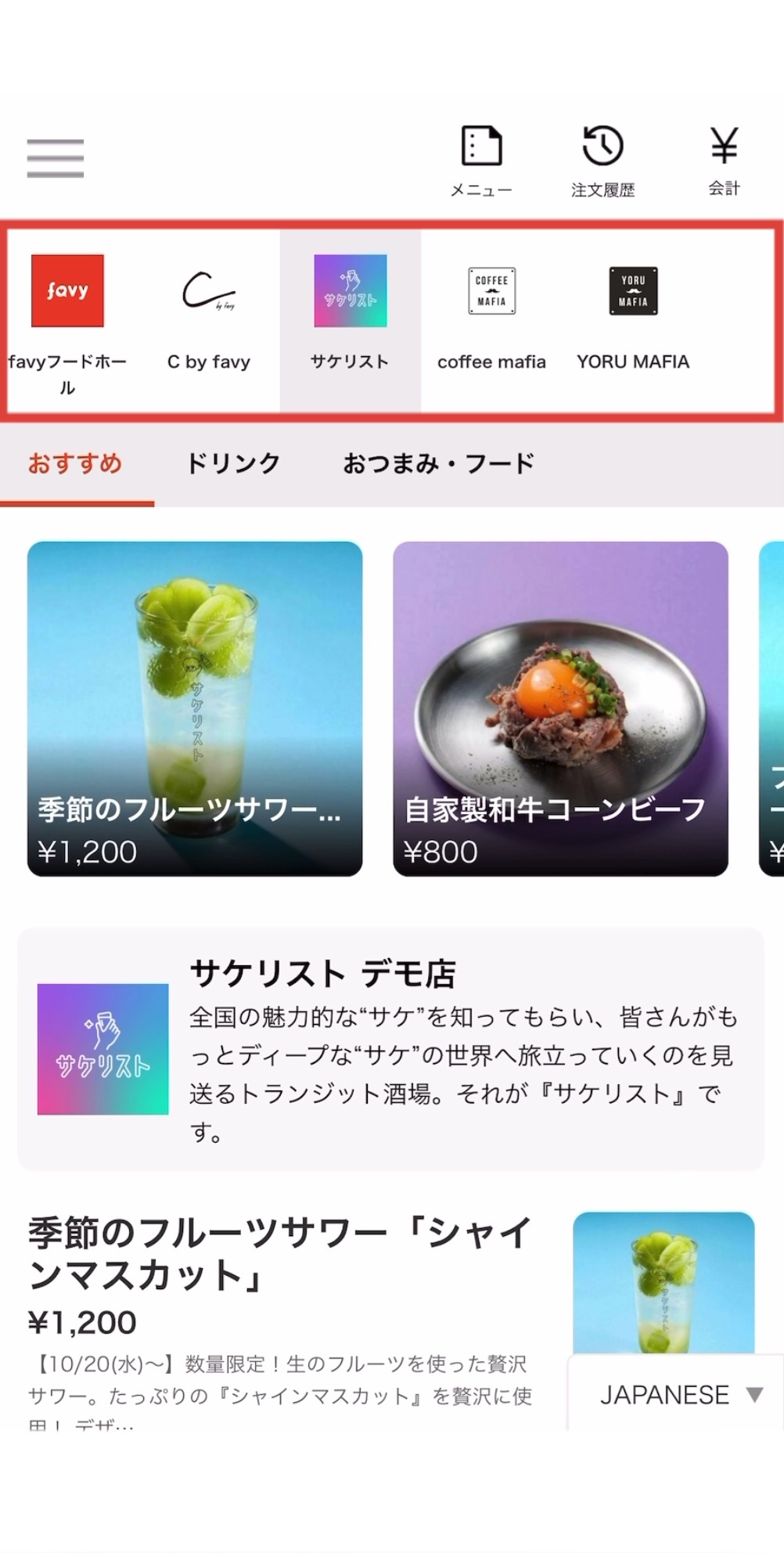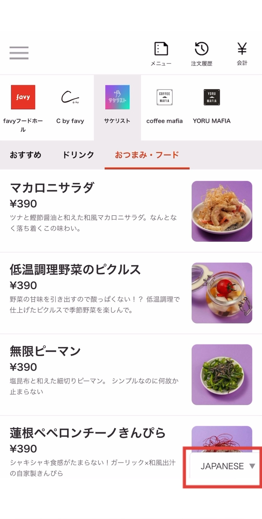 ・注文履歴:あなたのテーブルで注文された商品の一覧が確認できます。