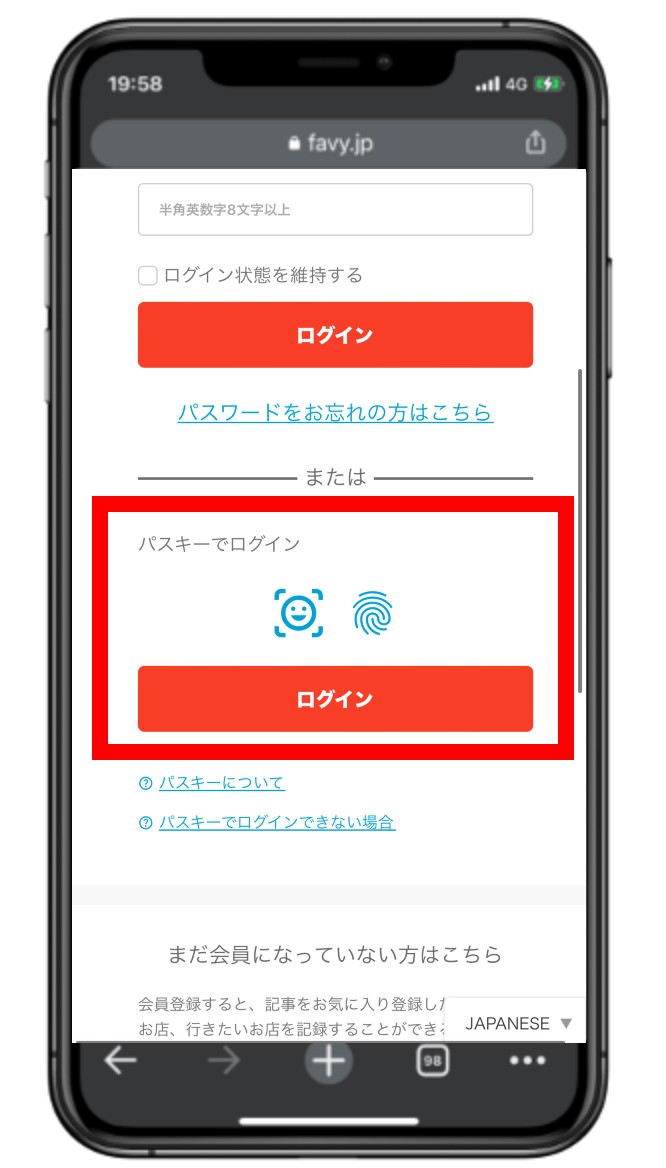 ・パスキーでログイン※パスキーのご設定方法は下記にてご案内しております。