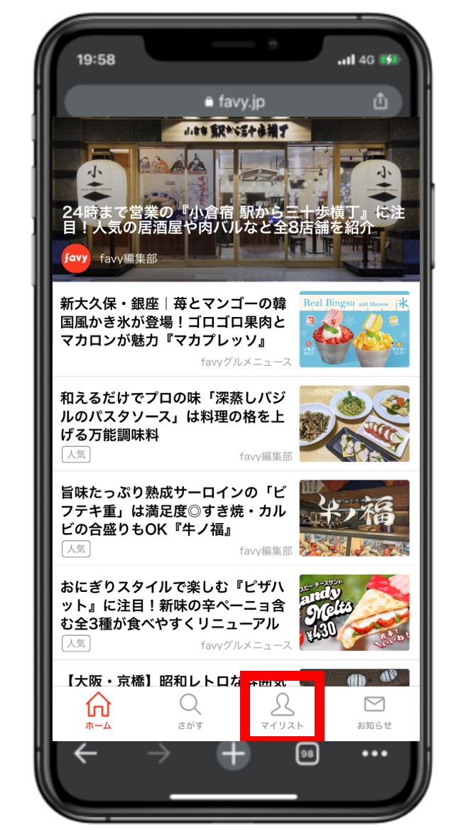 アプリを開き画面下の「マイリスト」をタップ