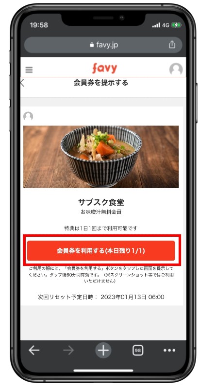 「会員券を利用する」をタップする。