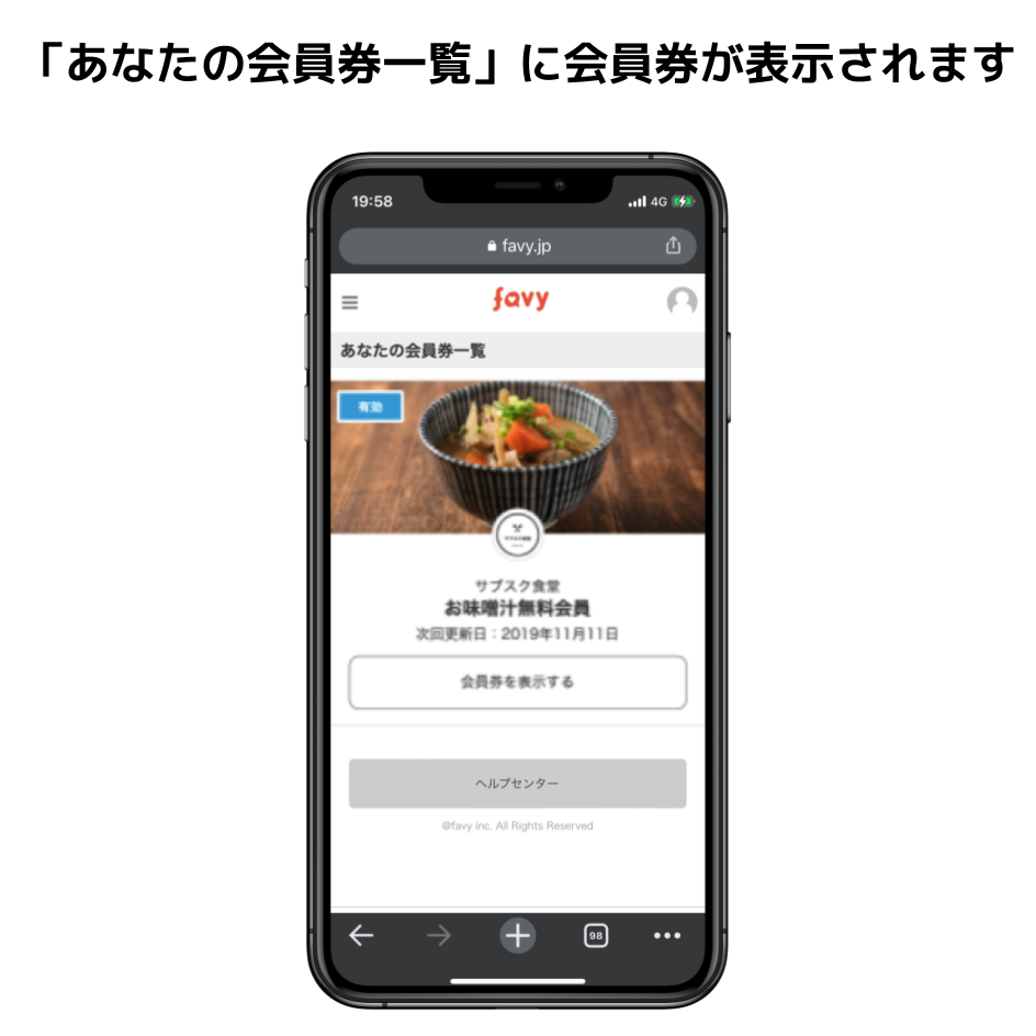 「会員券を表示する」をタップする。