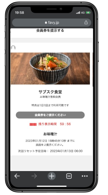 ※「会員券を利用する」をタップ後、表示には有効時間がございます。混雑の際や急用等によりご利用を辞める場合を踏まえ、店舗スタッフへ提示いただく直前に会員券の表示をお願いいたします。