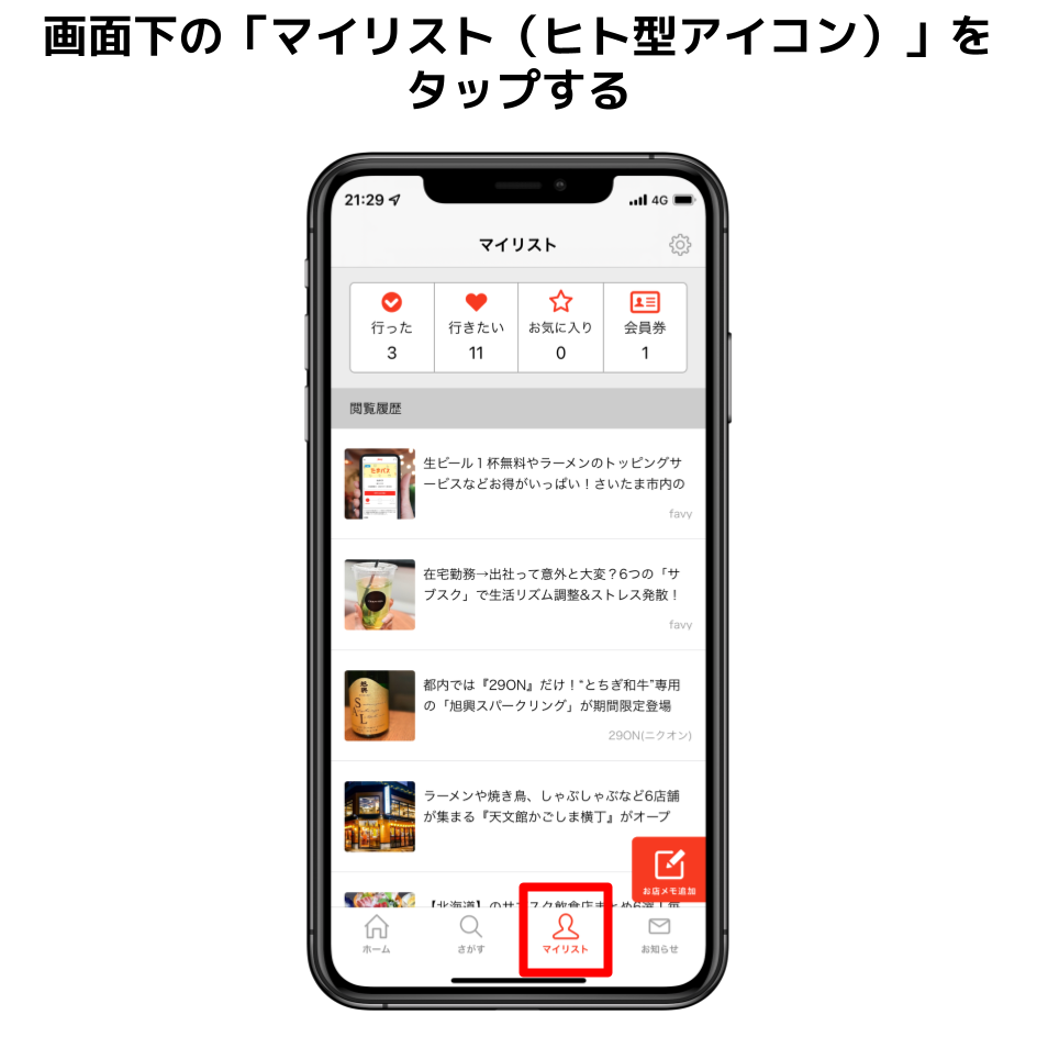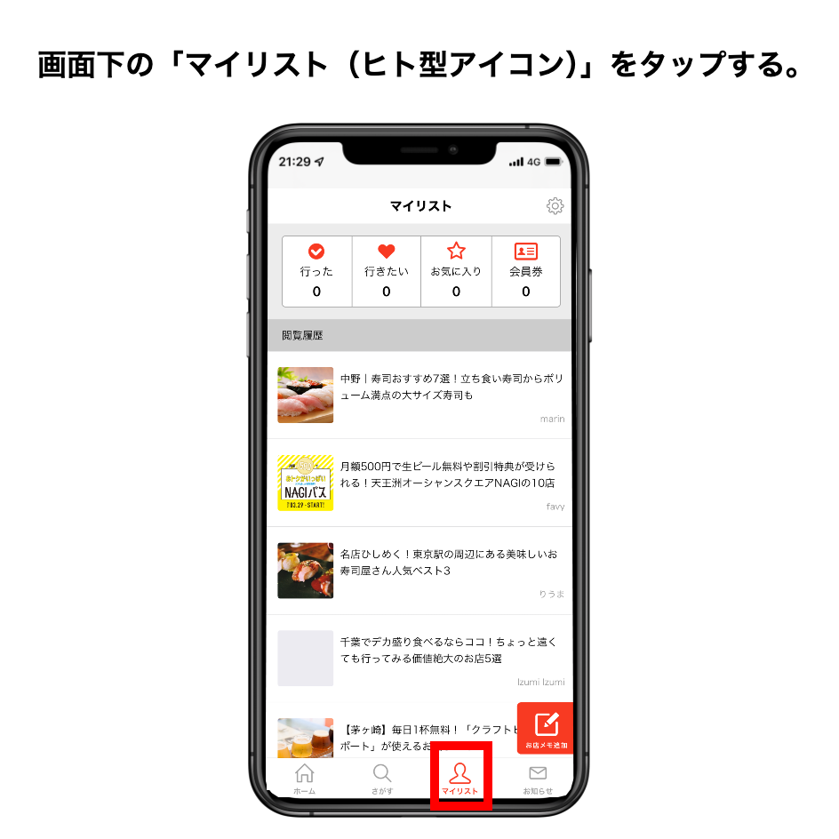 ログインができたら、再度画面下の「マイリスト(ヒト型アイコン)」をタップする。