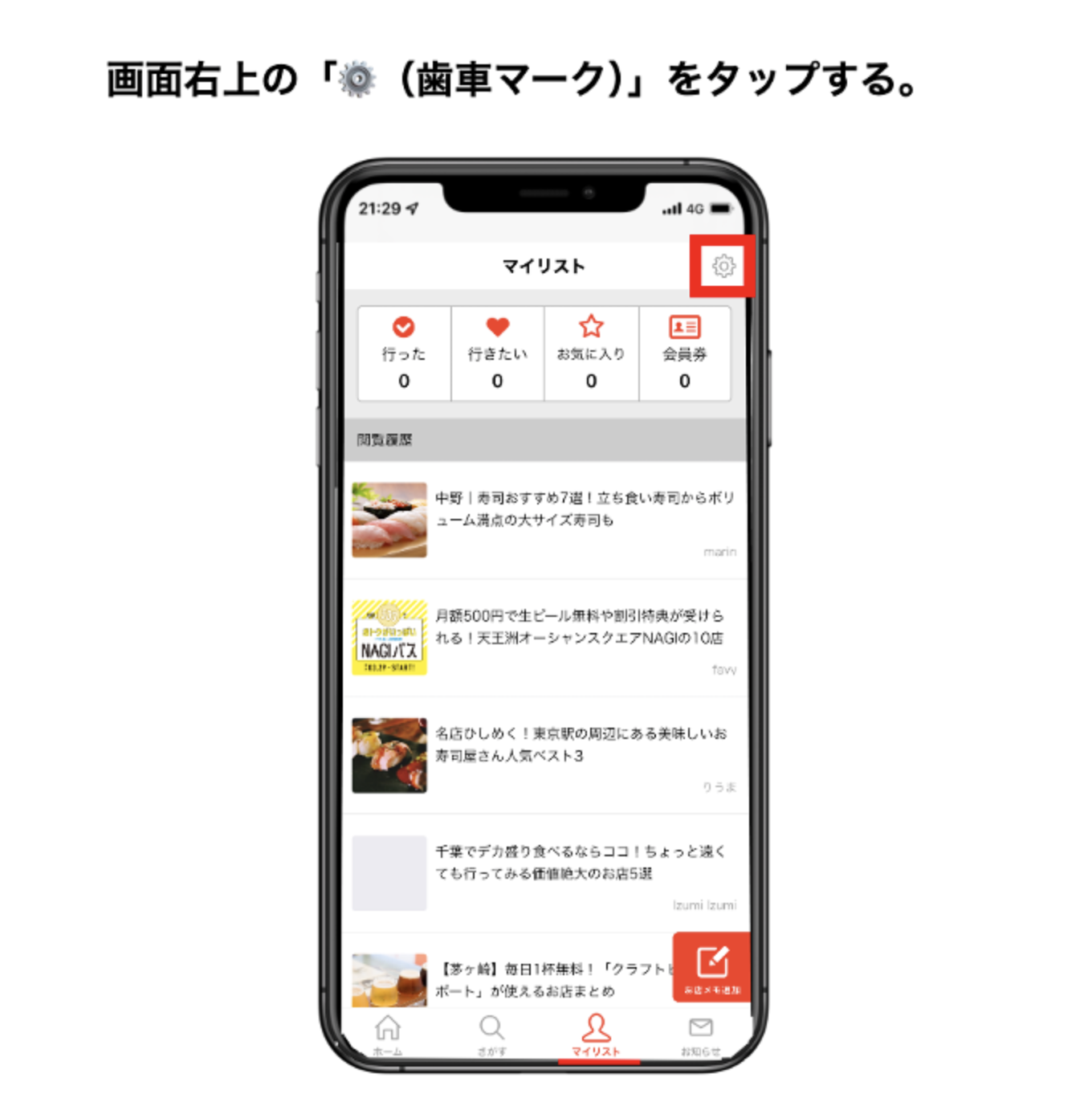 画面右上の「⚙️(歯車マーク)」をタップする。