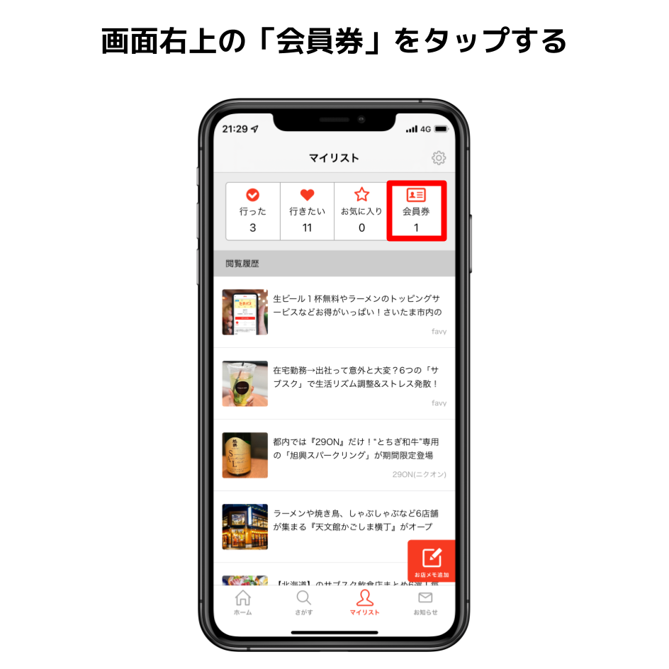 「会員券を利用する」をタップしていただき、その画面を店舗スタッフへご提示ください。