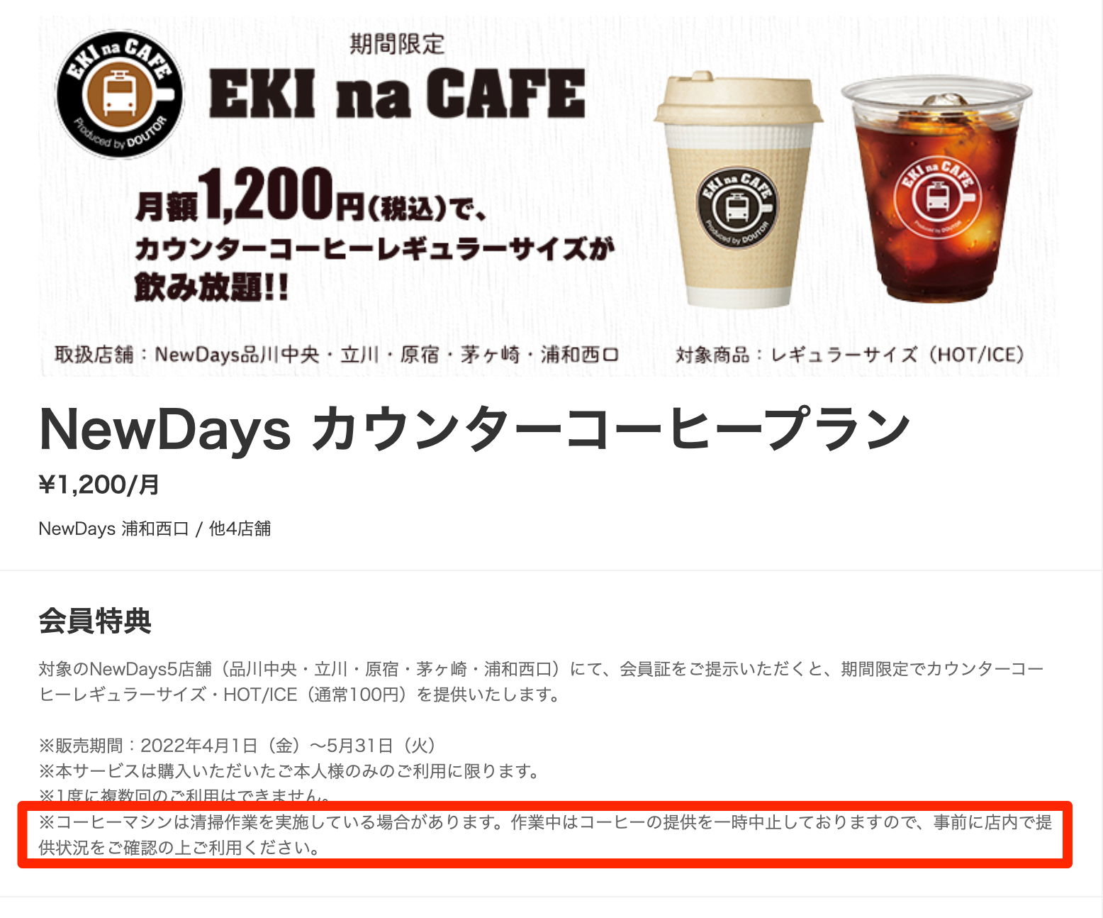 コーヒーマシンは清掃作業を実施している場合があります。作業中はコーヒーの提供を一時中止しておりますので、事前に店内で提供状況をご確認の上ご利用ください。